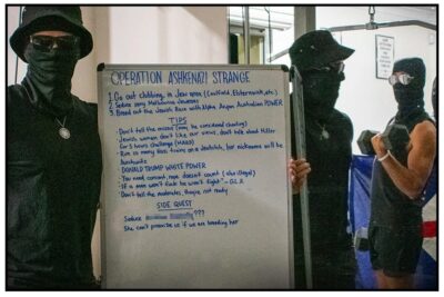 The National Socialist Network (hereafter the NSN) was formed in the year 2020 as a merger of sorts of two previous groupings, the Lads Society and Antipodean Resistance. The NSN ‘grouping’ operated co-projects the European Australian Movement (EAM) and later White Australia. Officially the NSN functioned as the activist outfit, lead by Jacob Hersant, and restricted participation to men. It is the group most members of the general public are familiar with, the one using black-bloc uniforms during all those street protests. The EAM, lead by former infantryman Thomas Sewell, was the more private and seemingly moderate umbrella group which did allow women to join (but not to been seen or be heard). White Australia came in 2025, set up solely to recruit supporters for a mooted political party to have been called the ‘White Australia Party’. Long since banned off platforms such as Facebook and YouTube, leading members of the NSN operated primarily on Telegram and X, using their swarm of online followers to raid comments sections, ‘juice’ comments supporting the NSN, and generally abuse all other Australians who disagreed with the nature of their political project.