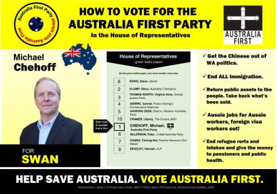 Outside these seats, Australia First Party’s electoral policy is to respectively preference the sitting member last.
